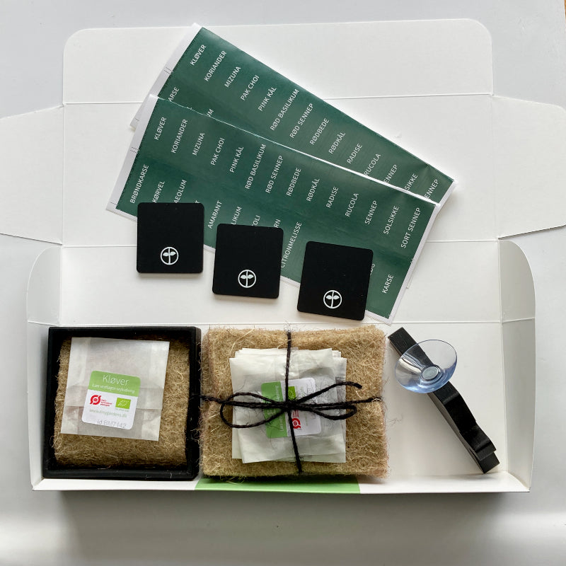 Du har sikkert prøvet at dyrke karse, men vidste du, at man også kan spise rødbede, broccoli, radise og mange andre grøntsager, mens planterne stadig er små spirer? Det hedder mikrogrønt, og spirerne er rige på smag og smukke farver, som gør maden mere indbydende. Alle frø er økologiske.